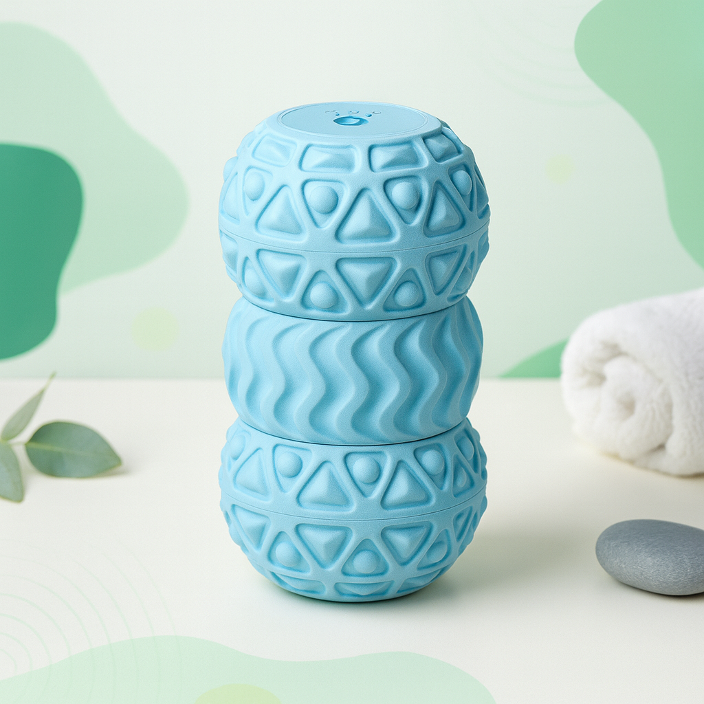 Enciende, elige intensidad y rueda bajo el arco del pie o sobre el músculo 5–10 min por zona. Úsalo antes/después de entrenar o al final del día.